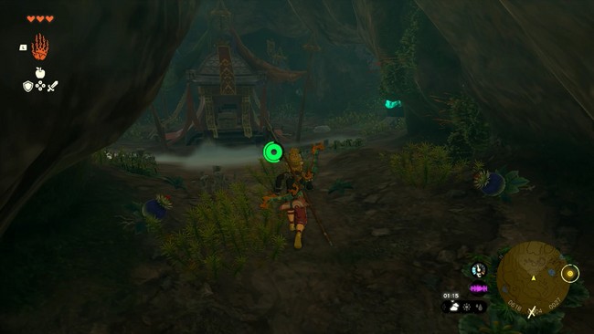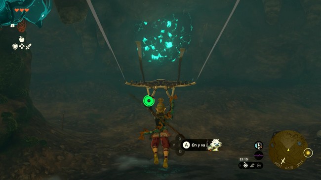 Si vous voulez éviter cette séquence, c’est possible. Dès que vous redescendez au niveau du sol, restez près du mur à votre gauche et faites le tour de la grotte. Vous êtes libre de faire du bruit, de détruire des gemmes lumineuses et de ramasser des objets pendant que vous y êtes.