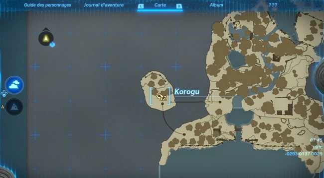 Chaque entrée est accompagnée d’une carte (affichant les coordonnées approximatives), d’une photo de l’environnement de l’emplacement du Noix Korogus et du type d’énigme à réaliser pour l’obtenir.