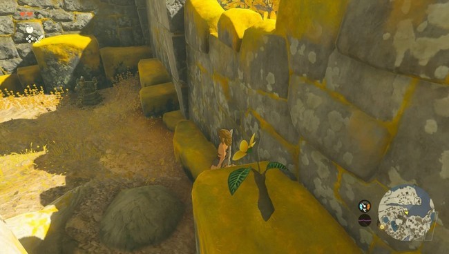 - Allez aux ruines de la centre de la région pour trouver un arbre centenaire. Juste à côté de cet arbre, il y a une plante atypique. Approchez-vous de cette plante, elle va disparaître et réapparaître à différents endroits. Vous devez la suivre jusqu’à ce que vous fassiez apparaître le Korogu et obtenir la noix.