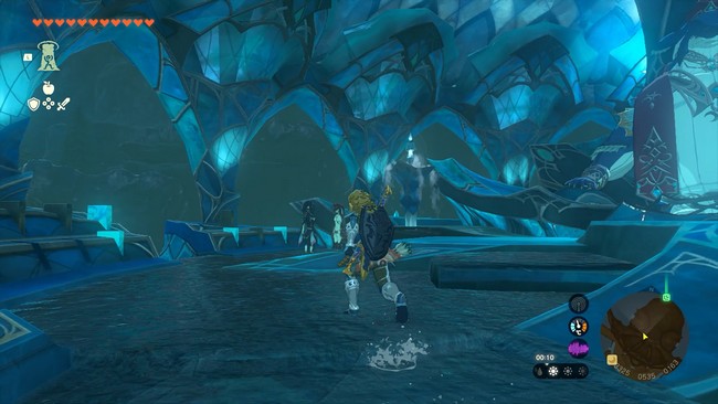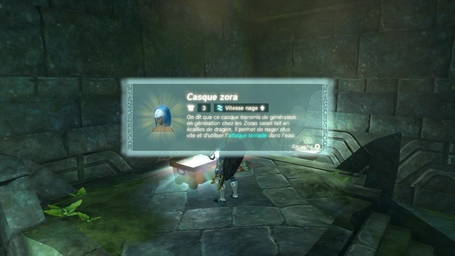 Descendez-y en utilisant votre Paravoile pour trouver une entrée secrète dans laquelle vous allez trouver le coffre avec le casque Zora à (4094, 0529, 0586).