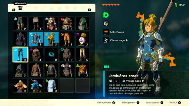 Ces pièces d’armure sont l’un des ensembles les plus recherchés du jeu, car elles permettent à Link de grimper sur des cascades et de nager à une vitesse incroyable. Elles sont incroyablement pratiques pour se déplacer, facilitant considérablement l’accès à certains endroits de la carte.