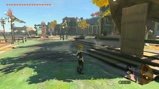 Retirez le panneau qui bloque la porte et ouvrez-la. Kornuieh remerciera Link et réinitialisera sa position à l’extérieur du bâtiment. Il y a maintenant une série de panneaux à l’arrière du bâtiment que Link peut utiliser pour aider Tinieh à monter dans le monorail.