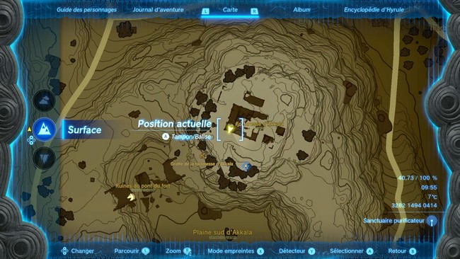 Pour obtenir l’Armure du Dieu Démon, visitez la Forteresse se situe à l’ouest du Village d’Euzero, au sud des Hauteurs d’Akkala. Une fois arrivé à la Forteresse, commencez votre chasse à l’Armure du Dieu Démon depuis le Sanctuaire de Domi Zuïno et dirigez-vous vers le côté ouest des ruines.