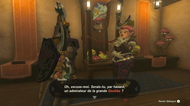 Les joueurs trouveront un attroupement devant la boutique de Goutiée, près de l’entrée de la ville, qui sont renvoyés parce qu’il ne reste plus qu’une place pour entrer. Link devient alors l’heureux dernier visiteur de la journée à entrer dans la boutique et à rencontrer la fabuleuse Goutiée.