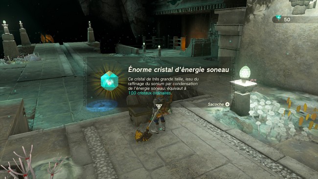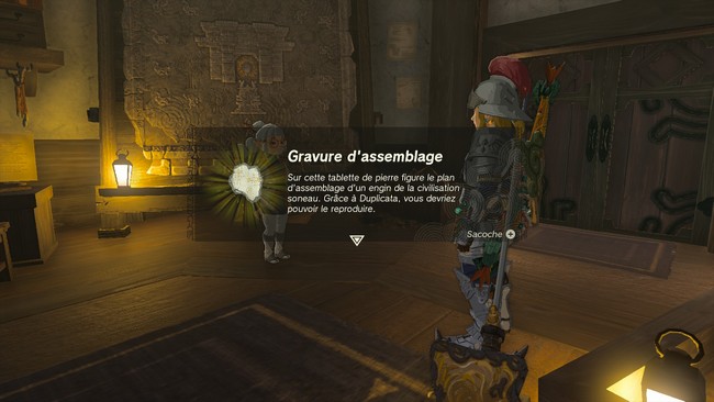 Ouvrez le coffre pour obtenir Énorme cristal d’énergie soneau. Retourner voir Josha au Fort de guet et vous obtiendrez votre première Gravure d’assemblage “Montgolfière”. Celle-ci fabriquer une Montgolfière.