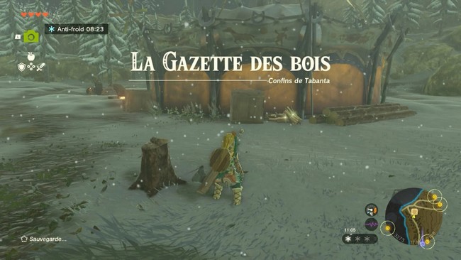 Voilà donc l’emplacement de la Gazette des Bois dans Zelda Tears of the Kingdom. Cela vaut-il la peine de s’aventurer dans les terres sauvages de Tabanta et de braver le froid et les monstres ? Oui, absolument. Ce n’est pas que vous puissiez trouver des objets de valeur dans les environs, mais plutôt que le fait de devenir un employé de la Gazette débloque une tonne d’autres choses. Par exemple, vous verrez Penn à chaque Relais que vous visiterez, et lui parler vous donnera une autre quête secondaire (comme celle du Sérénade pour une grande fée). De plus, rejoindre la Gazette est une étape nécessaire pour accéder à la Grande Fée Tera. Cela vous permettra de libérer les trois autres fées : Caesa, Mijah et Cotura.