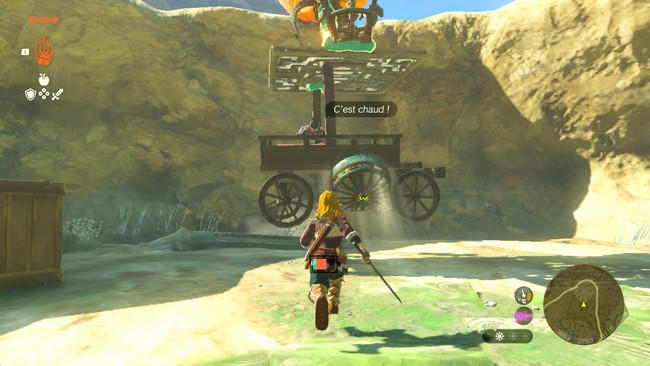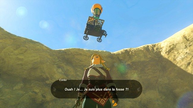 Une fois que tous est prêt, parlez à Coréo et faites-le monter à bord. Placez le le chariot près du mur et appuyez sur les hélices pour faire voler le chariot. Il ne vous reste plus que sortir le chariot de la fausse.