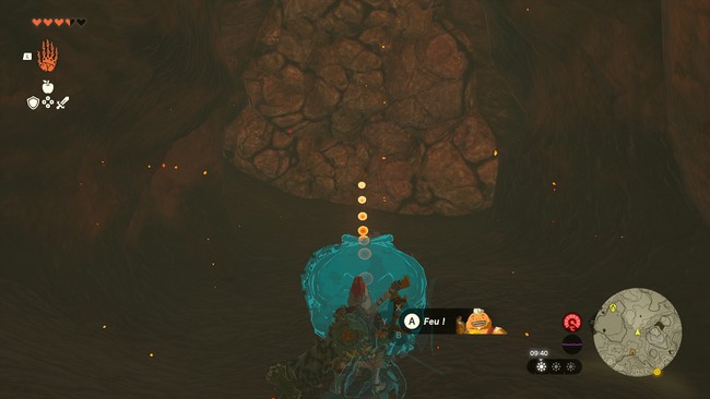 Continuez tout droit le long du chemin, en faisant exploser les murs de pierre qui vous empêchent de passer. Vous pouvez utiliser pouvoir de Yunobo où la Fleur bombe.