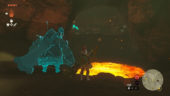 Traversez le passage tout droit, puis tournez à gauche et continuez à faire exploser le mur. Faites cela jusqu’à ce que vous soyez dans les bains du roc fondant. Entrez dans l’eau et regardez quelques scènes. Mark a trouvé ce qu’il cherchait, et vous accomplirez la quête « Les bains secrets ». Il vous donnera 100 rubis en récompense, ainsi que trois œufs durs cuits sur place.