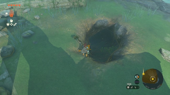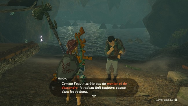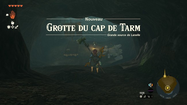 Une fois arrivé, entrez dans la Grotte du cap de Tarm pour rencontrer Mabbou, un Hyrulien qui se tient à côté d’un radeau.