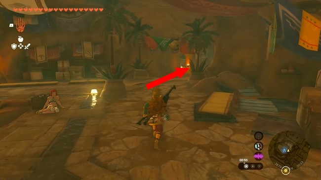 Pour ce faire, rendez-vous dans la cantine qui se trouve juste à côté de l’auberge. Si Link s’y est rendu avant la fin de la tempête, il remarquera une femme Gerudo qui se repose contre un orbe. Elle n’a pas réagi favorablement lorsque Link a essayé de le lui prendre. Aujourd’hui, il n’y a plus personne dans la cantine et Link peut prendre l’orbe en toute liberté.