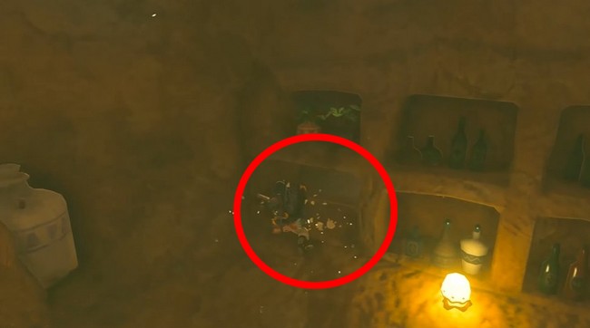 C’est par cette ouverture que se trouve la cantina. Une fois à l’intérieur, vous devez vous diriger vers la droite pour trouver un mur avec six étagères. Remarquez que l’étagère en bas à gauche avec deux bocaux a une autre zone derrière elle.