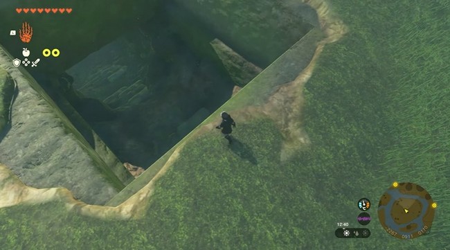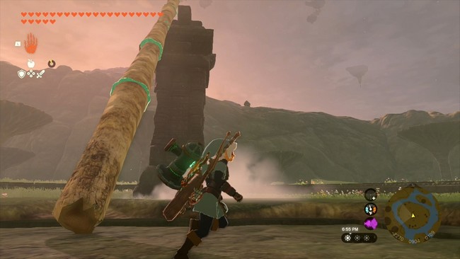 Attrapez l’un des côtés de la bûche avec Emprise et posez-la sur le pilier sud. Faites un feu de camp ici et attendez jusqu’à midi. Bien sûr, il faut que le ciel soit dégagé. Une fois qu’il fait beau, grimpez sur le pilier sud, prenez le long rondin et posez-le sur le pilier.