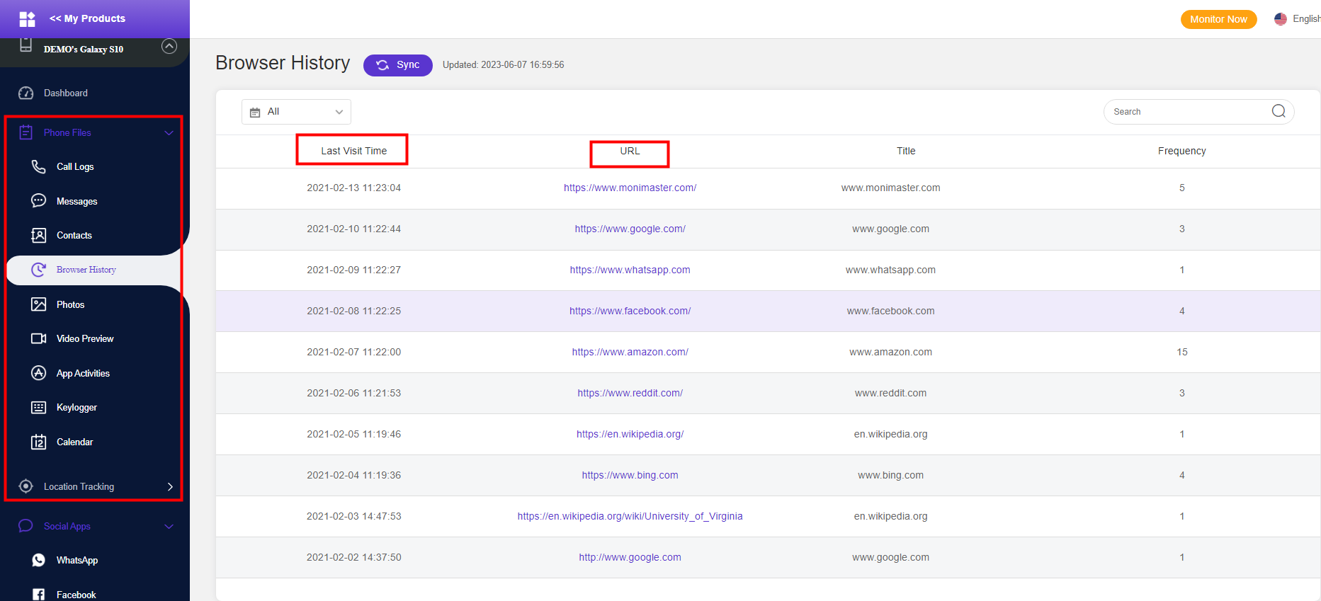Les parents peuvent consulter les journaux d’appels, les contacts, les photos et les vidéos. Ils peuvent également protéger les enfants contre les contenus inappropriés en vérifiant les types de sites Web sur lesquels les enfants naviguent et en découvrant le secret des signets des sites Web des enfants.