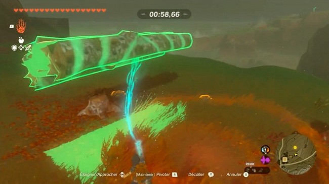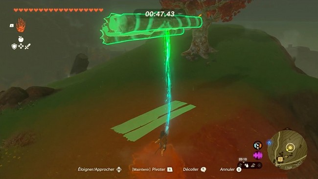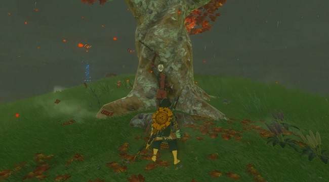 La deuxième épreuve consiste à amener 3 rondins de bois à l’endroit où se trouve la cocotte. Il y a trois arbres juste au-dessus de la colline, alors coupez-les avec une arme tranchante comme une épée. Utilisez Emprise pour coller les rondins et apportez-les à la cocotte en utilisant à nouveau Emprise.