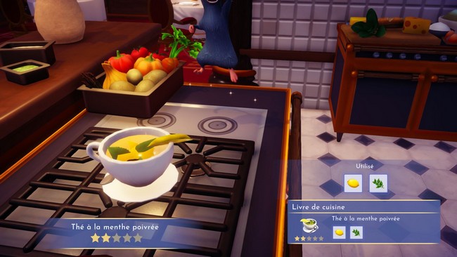 Tout d’abord, parlez à Marraine la Fée qui vous demandera de l’aider à répondre à certaines des demandes des résidents. Elle vous donnera la recette du thé à la menthe poivrée et vous demandera de remettre un échantillon à Minnie Mouse.