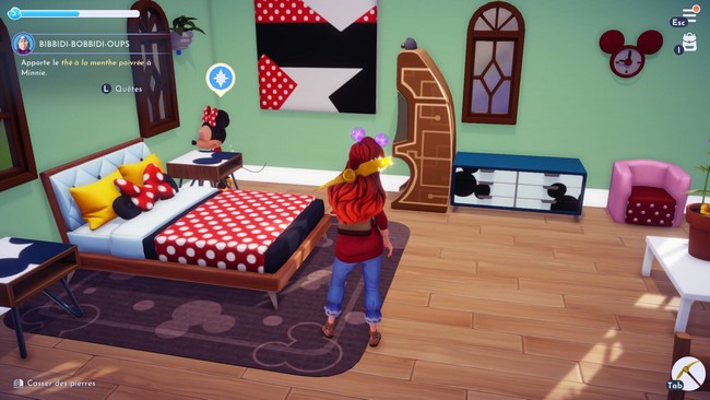 Après avoir apporté le thé à la menthe à Minnie, on vous demandera de prendre une photo d’un objet qui ne semble pas à sa place dans la maison de Minnie (une machine étrange à côté de son lit).