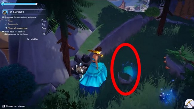 Une fois la conversation avec Woody et terminé, vous devez enlever les épines nocturnes qui poussent autour des rochers d’extraction dans la Forêt du courage et les briser.