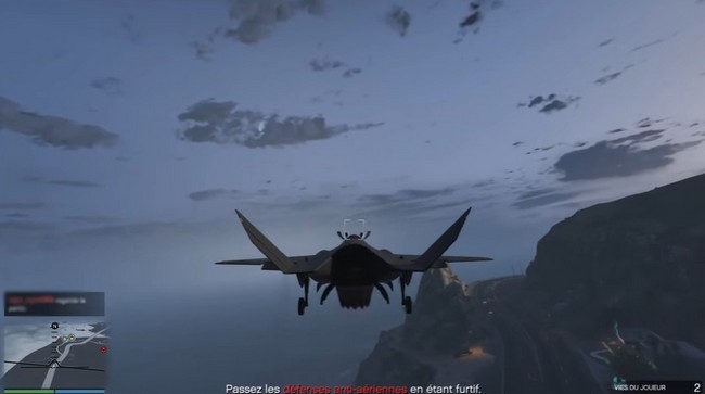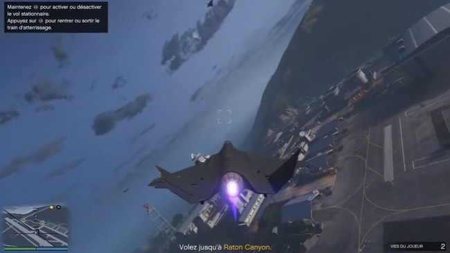 Vous devrez donc activer le mode furtif du Raiju pour passer. Pour ce faire, appuyez sur le bouton indiqué dans GTA Online dans le coin supérieur gauche de l’écran. Vous devez voler à basse altitude dans Raton canyon pour terminer cet objectif et passer au suivant.