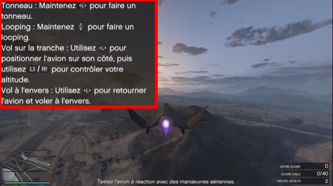 Volez jusqu’à l’aérodrome de Sandy Shores et l’objectif suivant consiste à tester la maniabilité du jet en effectuant des loopings, des tonneaux et d’autres mouvements aériens. Un guide s’affichera à l’écran, de sorte qu’il sera assez facile de compléter cette partie.