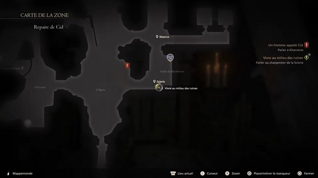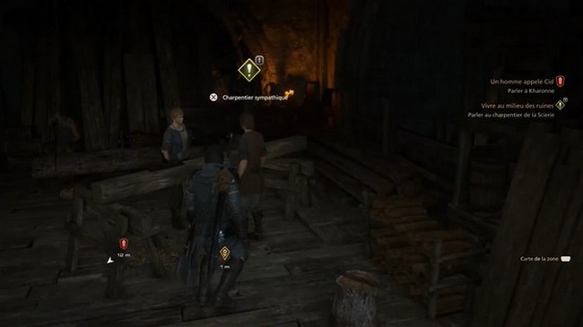 Vivre au milieu des ruines est une quête annexe située au repaire. Pour commencer, trouvez Geoffroy, maitre charpentier, et parlez-lui. Il vous demandera de récupérer du bois pour lui. Acceptez pour commencer la quête.