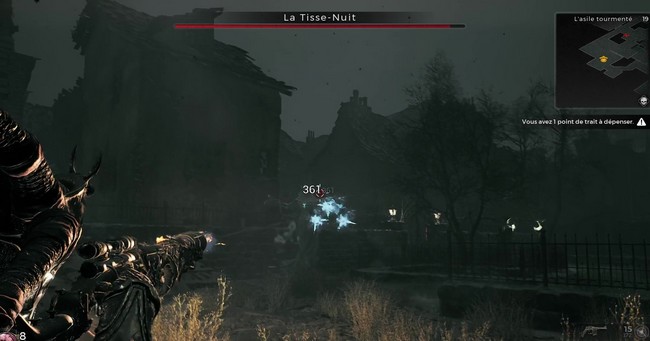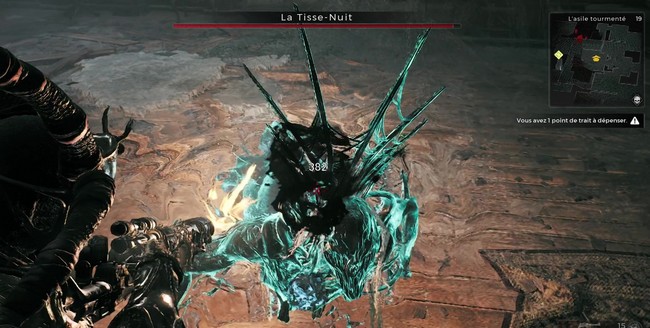 En plus de ses attaques de base, La Tisse-Nuit peut libérer des créatures qui ont peu de HP et qui perdent des munitions lorsqu’ils meurent. Lorsque la barre de santé de l’ennemi atteint 0, vous pouvez passer à la deuxième phase. Pour ce faire, approchez-vous du corps du boss, après quoi vous serez téléporté à l’Asile.