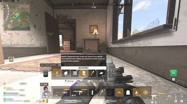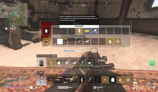 Trouver un déguisement est votre première tâche, et cela vous demandera un peu de recherche. Les déguisements se trouvent dans les sacs de sport ; d’autres joueurs affirment les avoir trouvés dans d’autres caches, mais j’en ai trouvé trois exclusivement dans des sacs de sport. Il a fallu plusieurs déploiements pour en trouver un, et je l’ai finalement trouvé dans un sac ennemi.