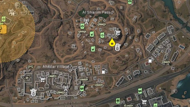 Sautez de la falaise de Zaya Observatory en direction d’Akhdar Village au sud-est. En utilisant votre parachute, planez jusqu’à l’endroit indiqué sur la carte ci-dessus, à côté de la statue d’Akhdar. Atterrissez à côté du boite de morte montré dans la deuxième image et faites la même chose avec l’ordinateur portable que vous avez fait plus tôt. Déposez-le dans le boite morte et récupérez-le immédiatement.