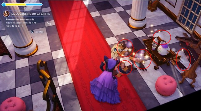 Où trouver les morceaux de meubles cassés dans le château de la Bête ?