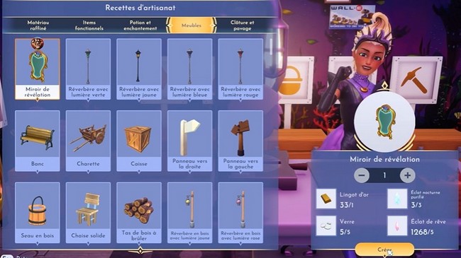 Pour fabriquer le miroir de révélation pour Mère Gothel, vous avez besoin des éléments suivants :