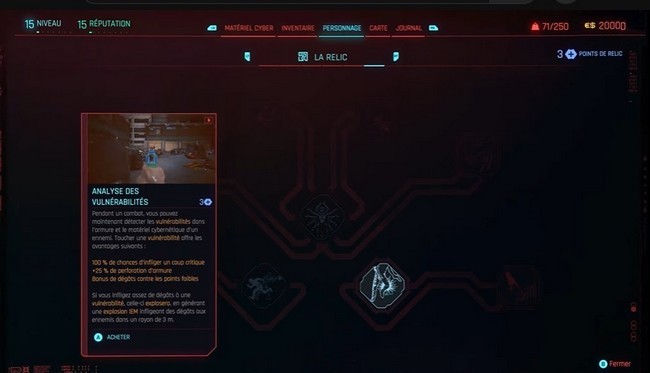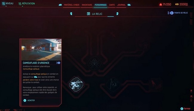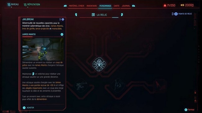 Quand obtient-on l’arbre d’avantages de la Relic dans Phantom Liberty ?