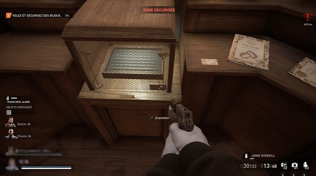 Vous pouvez désormais voler les bijoux sans que l’alarme ne se déclenche. Si vous n’avez pas envie de contrôler le hall principal, utilisez un code QR pour accéder à la salle d’exposition VIP, qui se trouve à côté du bureau du directeur. Cette pièce est remplie de bijoux et se trouve à l’abri des regards, ce qui vous permettra de faire sortir le butin plus facilement.