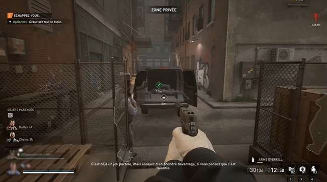 Le meilleur moyen d’accéder aux zones privées du magasin est de passer par l’arrière. Vous pouvez soit crocheter la porte sur le côté gauche du bâtiment, soit descendre dans l’allée sur le côté droit. Dans les deux cas, ces zones vous permettront d’accéder à l’allée arrière où un garde patrouille.