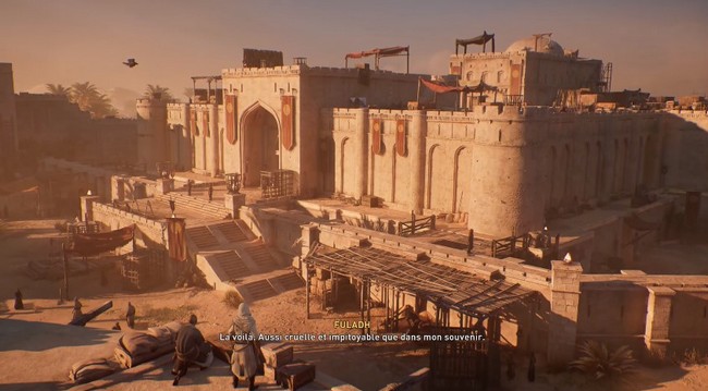 Maintenant que nous savons qu’Ali est retenu prisonnier dans la prison de la porte de Damas, il est temps d’y aller et de le faire sortir. Nous devons d’abord rencontrer Fuladh, qui se trouve sur un toit en face de la route et au sud de la prison elle-même, juste au nord-est de la Grande Mosquée (il y a un point de vue ici si vous ne l’avez pas encore).