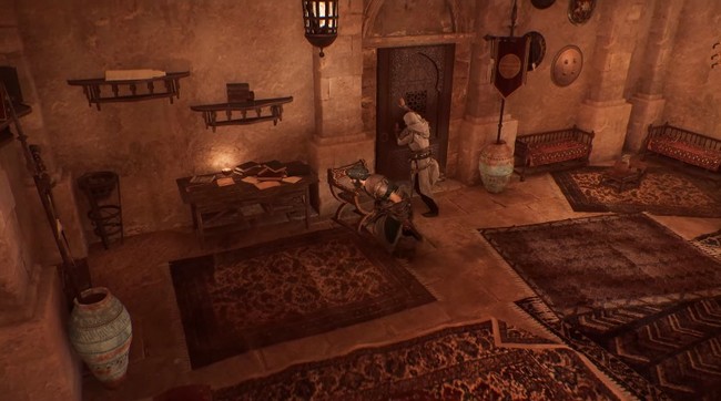 En haut, nous serons dans la pièce où nous avons tué le garde qui regarde la pièce du dessous. Affrontez les deux gardes restants ici… en notant qu’Ali les agressera probablement pour vous, car il n’est pas le plus furtif des individus et aime se tenir à découvert lorsque vous vous faufilez.