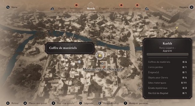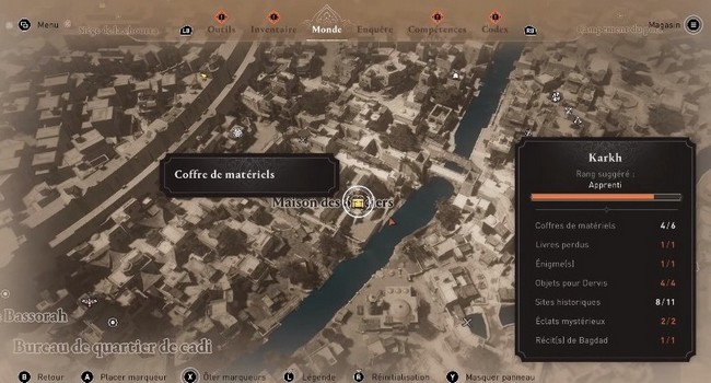 La plupart des équipements que vous gagnez se trouvent dans des coffres disséminés dans tout Bagdad. Cependant, il semble qu’ils se trouvent principalement dans des forteresses comme les palais et autres forts de la ville. Il en va de même pour la tenue de chevalier abbasside.
