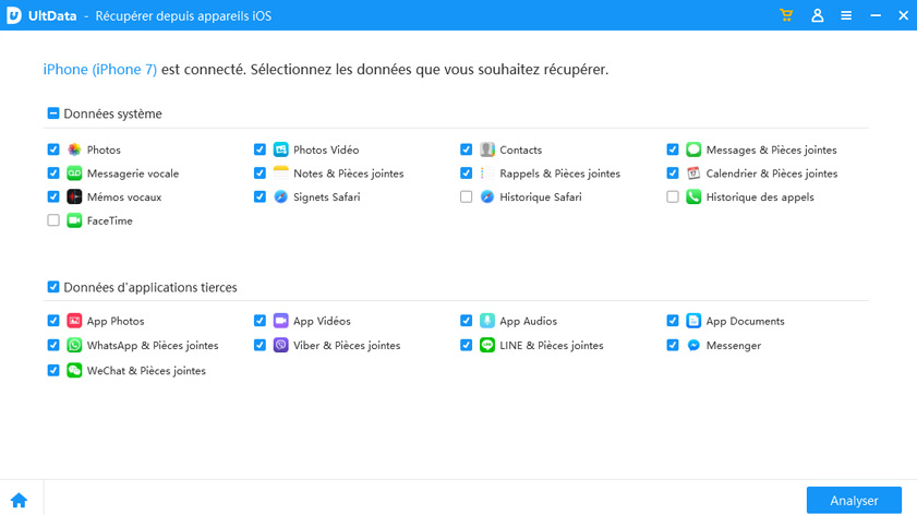 Avec Tenorshare UltData, vous pouvez rapidement récupérer vos contacts supprimés, parmi d’autres types de données. Vous avez le choix entre 3 modes de récupération puissants qui récupèrent les données directement à partir de vos appareils Apple, d’iCloud ou d’iTunes.