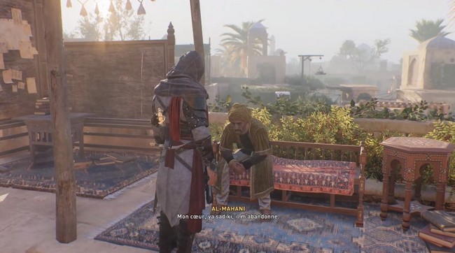 Une fois les trois pages en votre possession, il est temps de retourner à Al-Mahani. Mais le temps du vieil homme est vite arrivé, car il est mort sur le sol lorsque vous revenez. Vous devez maintenant vous occuper de son fils en deuil, et le jeu vous laisse choisir ce que vous allez lui dire.