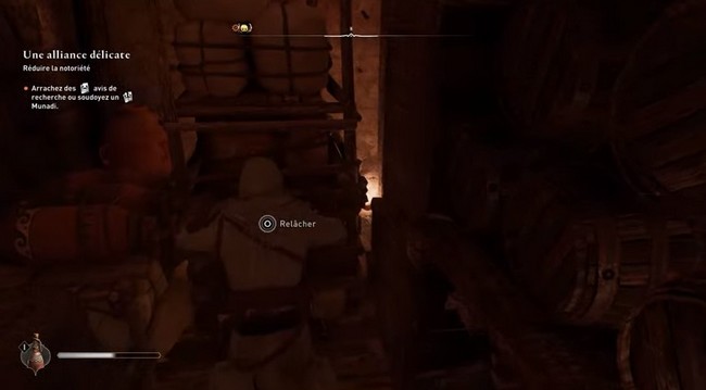 Dans la partie orientale de l’enceinte du monastère, il y a plusieurs étals qui vendent diverses marchandises. Près d’eux se trouve un puits avec une grue. Si vous sautez dans le puits, vous trouverez une porte grillagée. Le secret est que le puits, la grue et la porte barrée ne sont qu’une distraction. En fait, vous devez utiliser une entrée secrète, qui se trouve dans une zone située juste derrière le puits.