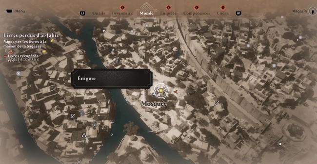 L’énigme Délice près du dôme dans Assassin’s Creed Mirage se trouve devant l’entrée de la Mosquée, au centre du quartier d’Abbasiyah, à l’ouest de la Ville Ronde. Nous avons indiqué son emplacement exact sur les cartes ci-dessous :