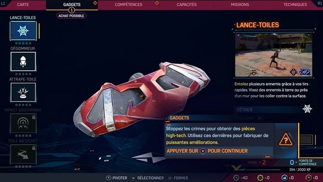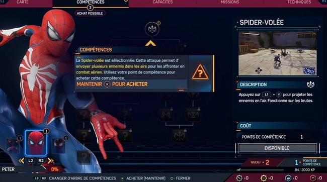 La seule compétence que vous pouvez débloquer est le Spider-Volée pour Peter.