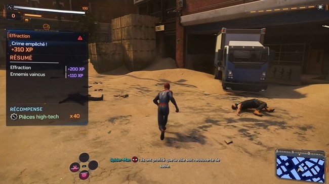 Une fois le système rétabli, Miles devra arrêter un crime : le camion blindé. Battez tous les ennemis et maîtrisez le mouvement Parry pour les ennemis plus grands et plus coriaces. Une autre demande arrive par l’intermédiaire de l’application ASDQ, alors rendez-vous au marqueur d’objectif et commencez par faire fonctionner les arroseurs.