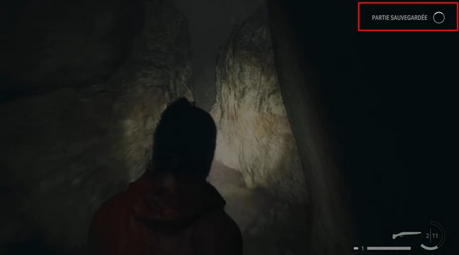 Comme dans le jeu original, Alan Wake 2 utilise une fonction de sauvegarde automatique qui se déclenche à certains points de contrôle. Cela se traduit par l’apparition d’un symbole circulaire et des mots » Partie sauvegardée « dans le coin supérieur droit de votre écran, comme le montre l’image ci-dessous.