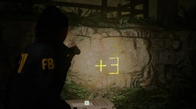 La résolution du puzzle « Pierre, pierre, arbre » implique trois équations mathématiques différentes que vous devrez résoudre pour obtenir chacun des nombres. Celles-ci sont situées sur un rocher derrière la caisse, un arbre à sa gauche et un rocher dans la partie inférieure de la zone. Vous pouvez utiliser les images ci-dessus si vous êtes bloqué. Le premier chiffre doit être le 3+3, soit 6. Le deuxième est le rocher du bas, 7 – 2 soit 5. Le dernier chiffre est celui de l’arbre, soit 6 + 2, ou 8. Mis bout à bout, le code devrait être 658.