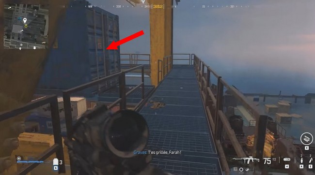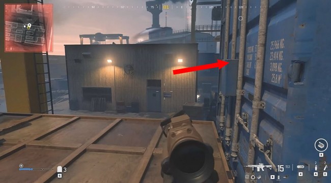 Plusieurs ennemis étant au courant de vos allées et venues, il est temps de poser les traqueurs. Le premier conteneur est situé sur le côté sud du quai de chargement. Allez-y pour poser le premier des deux traceurs.