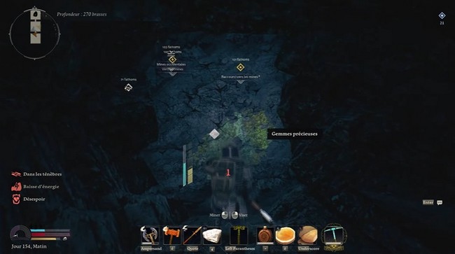 Une fois sur place, descendez les échelles et cherchez les nœuds de Gemmes précieuses sur les murs de la grotte. En fait, juste en descendant, vous pourrez en repérer quelques-uns.