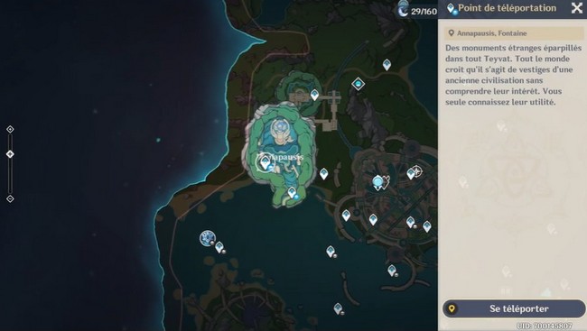Maintenant que vous avez les 4 conques, téléportez-vous à Annapausis et descendez du point de passage à la fontaine.