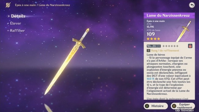 Comment raffiner la Lame du Narzissenkreuz dans Genshin Impact ?