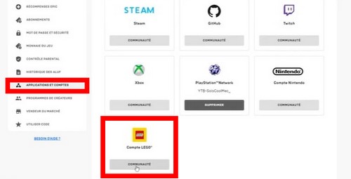 - Cliquez sur « Communauté » sous l’icône Compte LEGO.