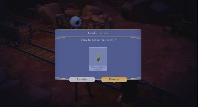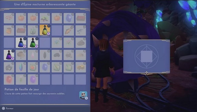 Interagissez avec la grosse épine nocturne à côté de Jack et vous devez choisir la bonne potion : la potion jaune.